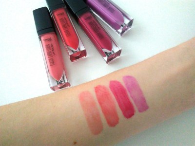 | TIU Lip Polish swatche – zleva: 010, 020, 030, 040 |