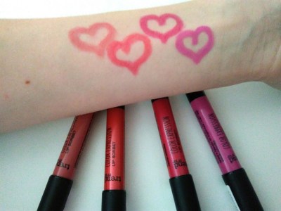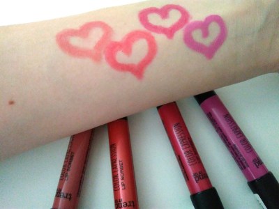 | TIU Lip Sorbet swatche – zleva: 010, 020, 030, 040 |