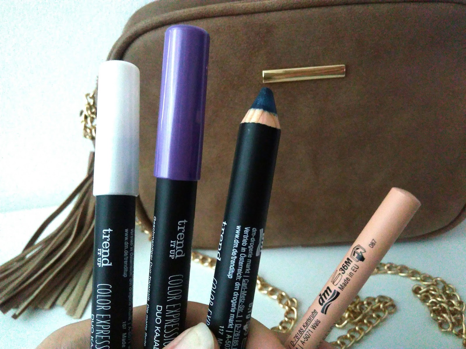 Tužky na oči Trend It Up Duo Kajal mě trochu vyděsily svojí tloušťkou. Pravda, neuděláte s nimi precizní tenké linky, ale využití by se pro ně našlo. Jsou dobře pigmentované a dobře se rozmazávají. Doporučila bych je proto začátečníkům. Když něco zkazíte, jde to dobře dolu. 😀 Pravděpodobně z toho budou lepší stíny než linky. Tužka Trend It Up Nude Kajal na spodní vodní linku je naproti tomu naprostá bomba!