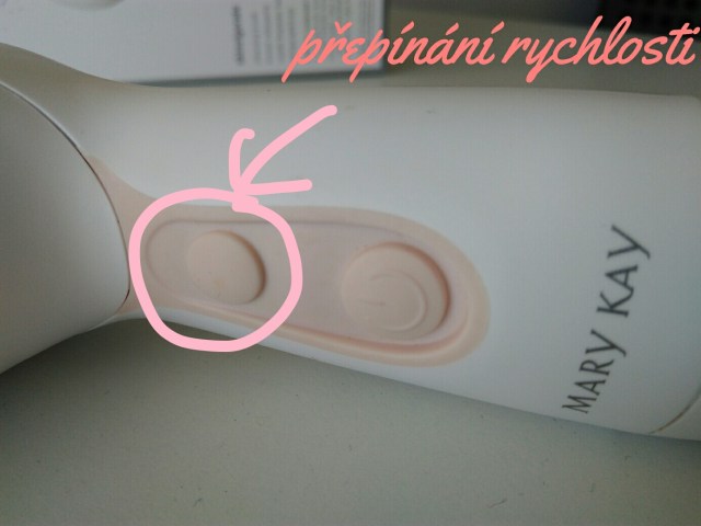 Po zapnutí si můžete vybrat ze dvou rychlostí otáček hlavice. Já jsem zprvu používala tu první, pomalejší, a nyní, po půl roce používání, kdy mám slabší baterky, jsem přešla na druhou rychlost, která se stala naprosto vyhovující i na mojí citlivou pleť (normálně to tak není), a můžu kartáček používat vesele dál. Ano, po tak dlouhé době jsem ještě nemusela měnit baterie. 🙂