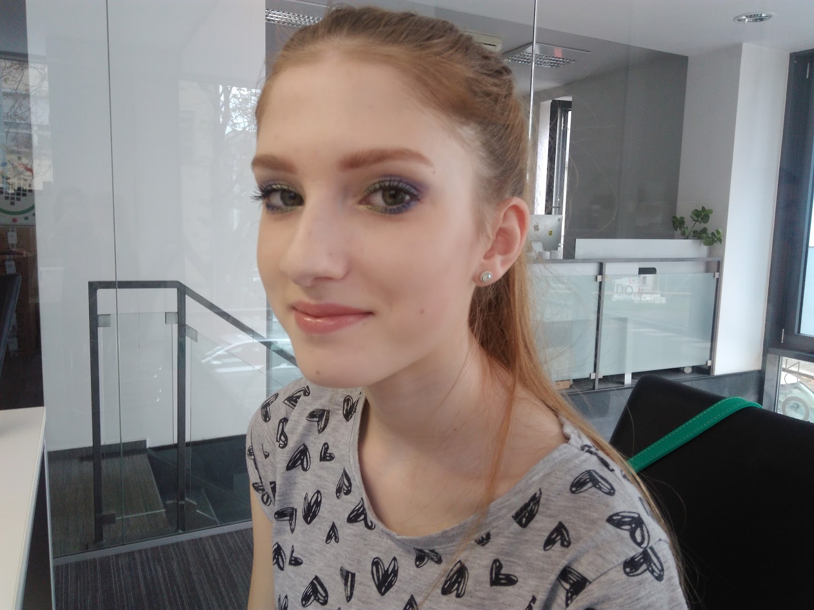 Na závěr jsme si vybraly styl líčení, který se nám na kurzu na sobě nejvíce líbil, a tak jsme se nalíčily před odchodem. Kupodivu se byznys líčení moc neujalo a my jsme tak odcházely s bláznivými barvičkami na očních víčkách.