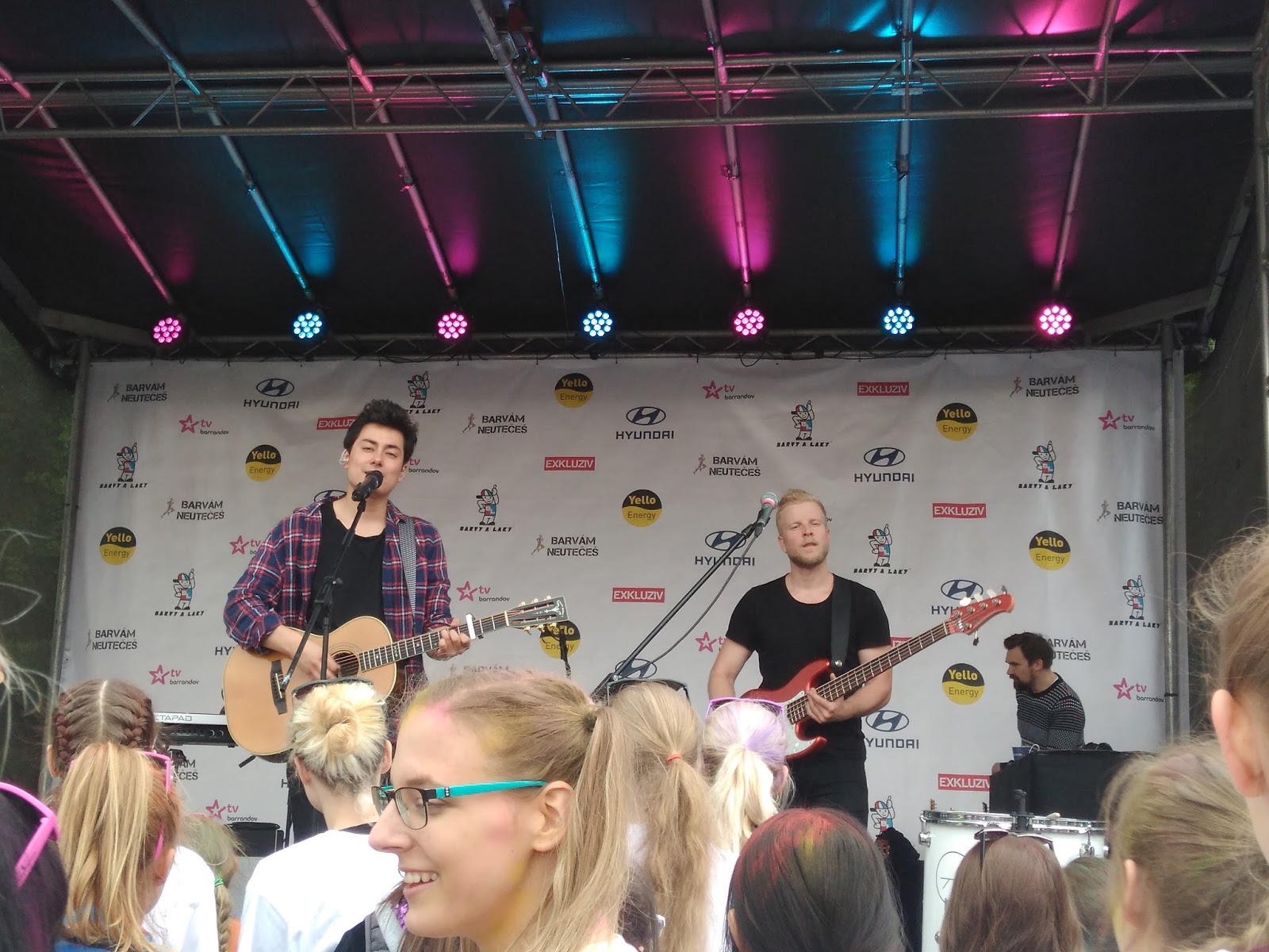 Když jsme doběhly do zdárného cíle, postavily jsme se do jedné z mnoha front na jídlo. Výběr byl slušný. Daly jsme si tortilly a usadily se na trávník před pódiem. Akorát jsme to stihly před tím, než začala tombola a koncert skupiny Mirai, na kterou jsme se tak těšily. Koncert byl naprosto skvělá tečka na závěr už tak skvělého dne. Kluci jsou moc sympatičtí a talentovaní.