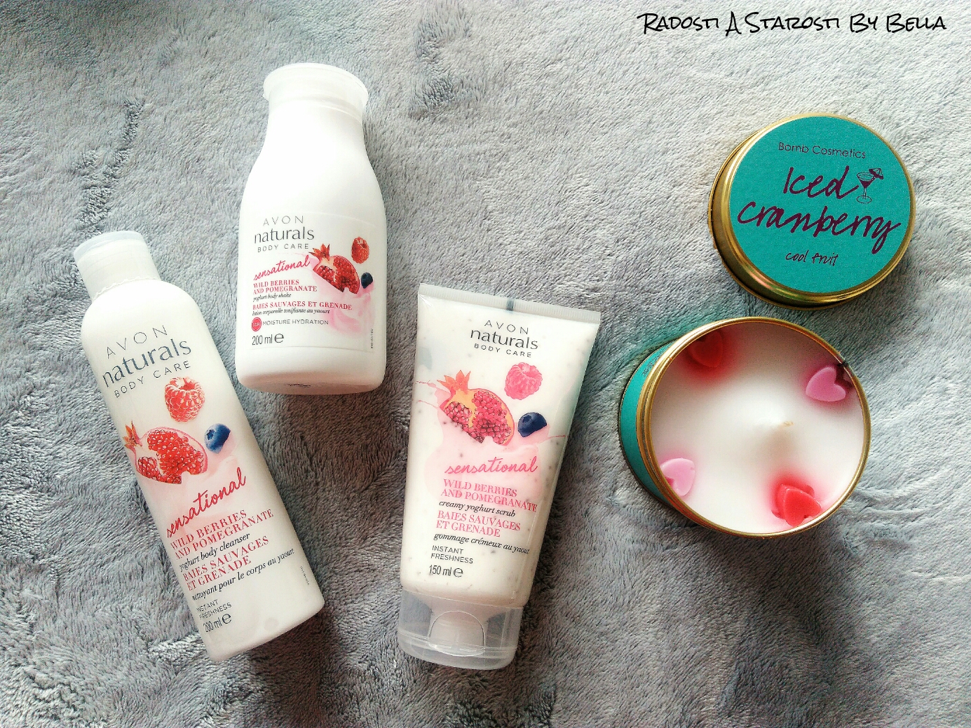 | sada Avon naturals, svíčka Bomb cosmetics v plechové krabičce |