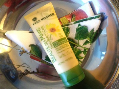 Na druhém místě se umístil krém na ruce a nehty od Yves Rocher. Má praktický uzávěr, dobře se vstřebává a má jemnou přírodní vůni heřmánku, kterou mám také moc ráda. Jeho obal už prošel renovací a moje skoro vypotřebovaná chudinka je zapadlá za skříní, takže jsem si na fotku vypůjčila ten sestry.