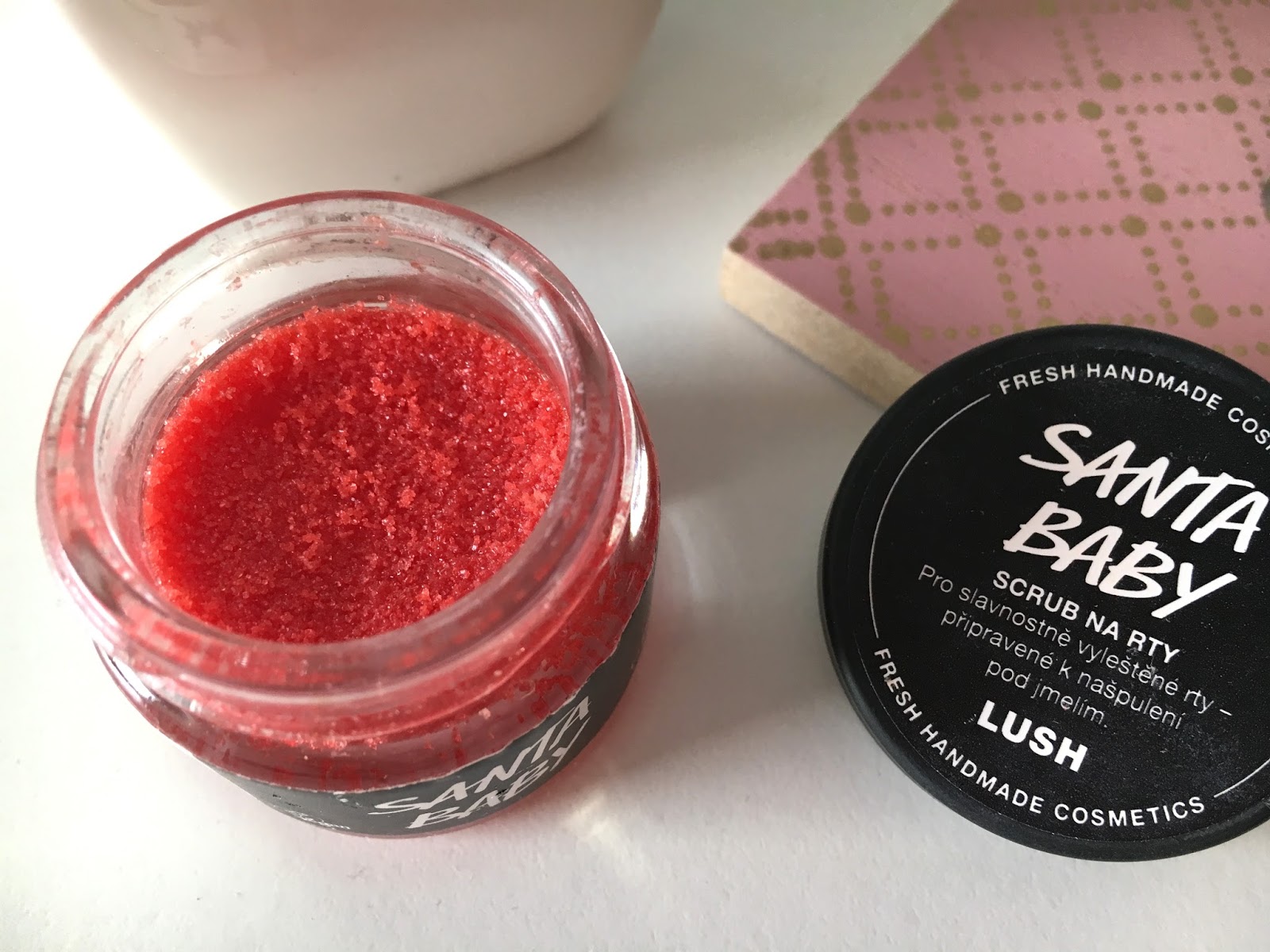 Scrub na rty Santa Baby od Lushe jsem dostala k posledním Vánocům, jak už asi víte