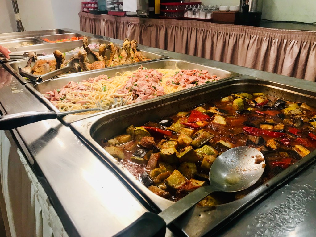 V Řecku se setkáte v souvislosti s ubytováním a stravou převážně s termínem All Inclusive Light. To znamená, že máte k dispozici nepřeberné množství jídla a pití, nicméně, jen v době snídaní, obědů a večeří. Když chce člověk svačinku nebo vodu v mezičase, musí si jí koupit na hotelovém baru u bazénu či v místním supermarketu. Jak už jsem zmínila v předchozím odstavci, v lednici byla jedna láhev vody na uvítanou a další si člověk mohl koupit v hotelovém baru, kde to vyšlo cenově stejně jako v marketu – a to za 0,40 € 1,5 l (balení po 6 kusech 2,40 €).