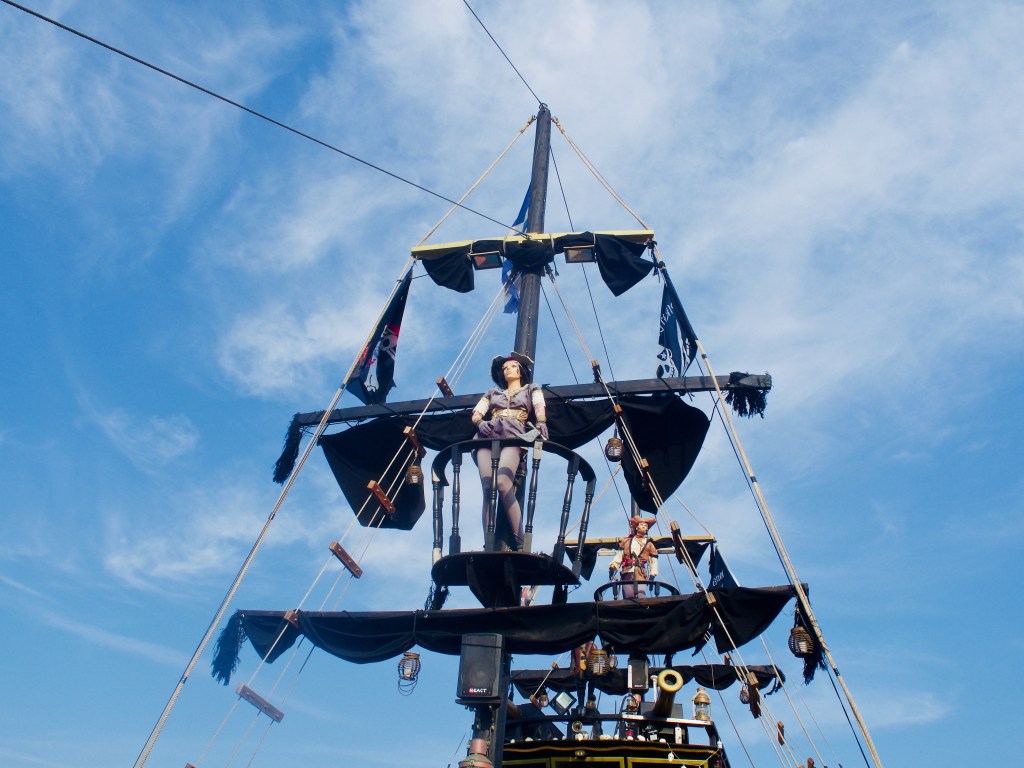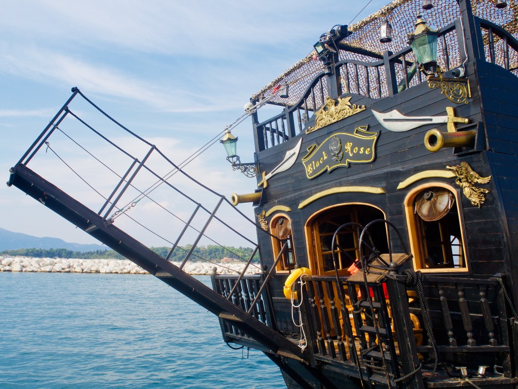 Po příjezdu do Kerkyry jsme měly možnost připlatit si jízdu s “pirátskou” lodí podél pobřeží Starého Města (10 €). Tahle údajně pirátská loď pro mě byla zklamáním, protože jsem měla srovnání s Tuniskem. Tam byli ti námořníci převlečeni jako piráti, měli autentičtější loď a během plavby s námi tenkrát vtipkovali, fotili se a pouštěli hudbu, na kterou jsme společně tancovali jejich tanečky. Tady ne. Zvenku loď vypadala pirátsky, i na palubě byla nějaká dekorace, ale měli tam natažený koberec a s tématickým oblečením se neobtěžovali. Jediní “piráti” na palubě byly děti, kterým půjčili klobouky a šavle. Nutno podotknout, že to byla letošní horká novinka, dříve takovou atrakci v Kerkyře neměli.