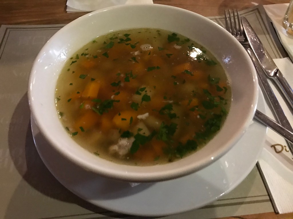 Co by to bylo za neděli bez dobrého oběda. S přítelem jsme si zajeli do Šeberova do místní restaurace/pizzerie Di Carlo. Docela se divím, že se nám podařilo zaparkovat a usadit se ke stolu, jak tam bylo plno. Dala jsem si na zahřátí vynikající slepičí vývar s nudličkami a zeleninou a jako druhé jídlo svůj oblíbený salát. Nesnažila jsem se honit linii, ale počkejte, až vám řeknu, co v tom salátu bylo. Jednak k tomu byly kuřecí špízky naložené v kokosovém mléku, sojové omáčce a sezamu, ale hlavně tam bylo i ovoce! A to moje nejoblíbenější na světě – jahody a meloun (ten žlutý). Melouny, ať už jakýkoliv druh, bych mohla jíst na kila. Taky jsem jich letos spořádala! Převážně toho vodního.